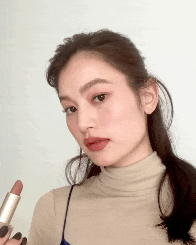 同類色妝面是氛圍營造感的重要,桃子妝、干枯玫瑰妝全是勝在啞光眼影、眼影、唇膏的顏色統(tǒng)一性,給人極強的視覺果氣氛感。