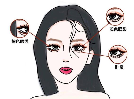 (2)根據(jù)自己眼睛的形狀畫眼線。眼睛圓的人需要做一個拉長眼線的眼睛形狀。如果可能的話,可以拉到眼角和眼角。眼睛形狀細長的東西會增加寬度,如果把重點放在眼睛的正中間,眼睛就不會感覺很長了。也就是說,可以在眼睛的位置畫一點根部,或者選擇卷曲的睫毛來彌補。