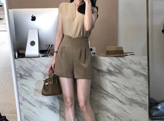 (6)卡其色短褲也可以搭配黑色的內(nèi)襯加卡其色西裝外套,因?yàn)榭ㄆ渖萄澏嗍俏餮b版型的類型,這個時(shí)候搭配上西裝外套,不管是上班還是出去玩都能夠良好的匹配上,而且既有精英女性的感覺,也有知性美,如果發(fā)型是溫柔的波浪卷,也能夠增強(qiáng)女性氣質(zhì)。