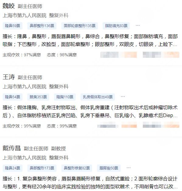 1、上海九院鼻部綜合好的醫(yī)生