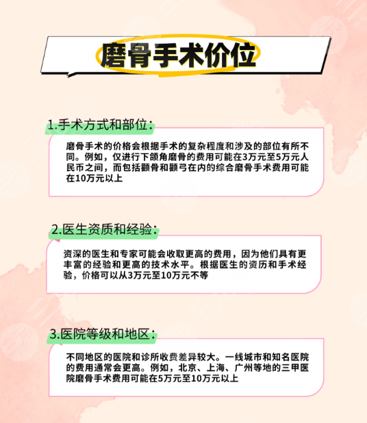 ·骨骼修復(fù)材料:若磨骨后需骨質(zhì)固定,需額外支付材料費(fèi)用5000-10000元。