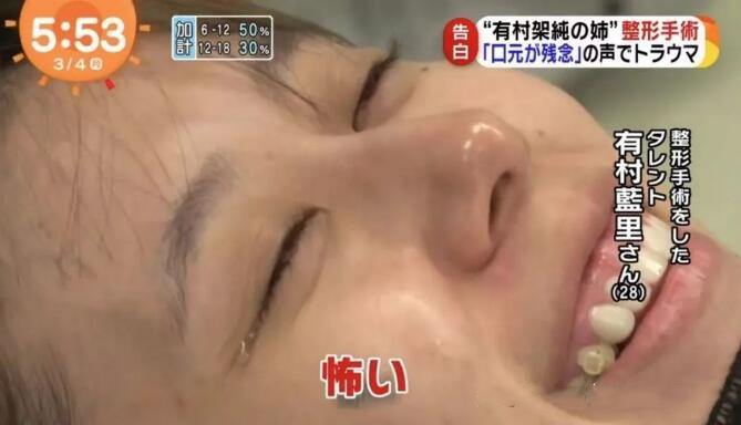 有關(guān)第一次整容,有村藍(lán)里在欄目中敘述過(guò),過(guò)去五年里,早已拔出六顆牙。