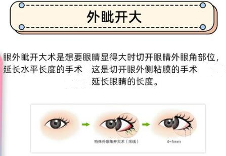 1、開(kāi)外眼角是通過(guò)外科手術(shù)的方式將外眼角切開(kāi),從而釋放一部分的肌肉組織,也能夠讓整體的眼睛變得更加的和諧,然后切除部分皮膚后再縫合,眼睛能夠看上去變得更加的自然,眼角處的肌膚也會(huì)被拉長(zhǎng),起到增大雙眼的目果,因此果圖是較為明X的,看上去也會(huì)較為的和諧和美觀。