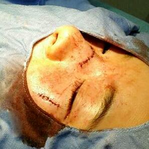 這個是做手術(shù)當(dāng)天的照片,其實看著有點嚇人。希望后期能恢復(fù)得好。