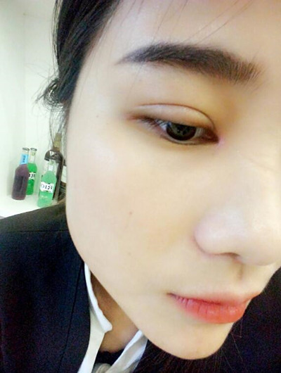 手術(shù)后的第三天,紗布給拆了,眼睛比昨天看起來好多了,沒有那么腫,也沒有那么紅了,眼形看起來也挺不錯的,看起來很喜歡這種感覺!