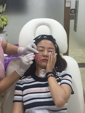 在進行手術之前是要敷*藥的,畢竟是在臉上嘛,不打*藥是很疼的,半小時之后就開始動手術了(其實這還算是微創(chuàng)手術啦)