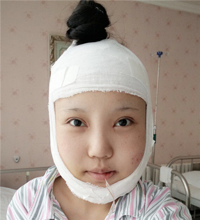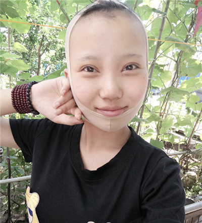 術(shù)后第十天左右,之前“豬頭”如今已變成了一枚小臉美女啦,雖然我現(xiàn)在還戴著下頜套,但你明X看得出我的臉已經(jīng)小了不少,你們看看呢?