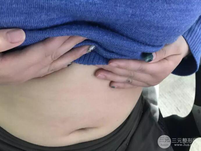我腹部的贅肉一直都比較多,其實我的體型也不算胖,我一米六,體重九十斤,別的地方都還好,腿上和臉都沒什么肉,但就是腰部贅肉特多,游泳圈都有好幾圈了,給大家看看我術前坐著拍的照片