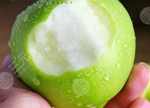 (3)、啃青蘋果:啃青蘋果,也能夠讓牙齒變白,而且,啃青蘋果,還能夠防止牙齒發(fā)黃。這是因?yàn)榍嗵O果中,富含有大量的維生素和一定量的果酸。這類物質(zhì)可以有效清除牙齒表面的污垢,從而達(dá)到潔白的效果。