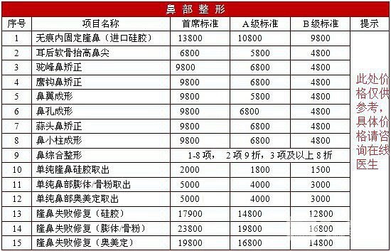 小魚溫馨提示:價格受到手術方式、自身情況等因素影響,以上價格僅供參考,想要了解更加詳細的價格, 可以進行在線咨詢。更多整形相關的問題、醫(yī)院專家信息及口碑,價格折扣!信用付款!盡在三元整形網(wǎng)~